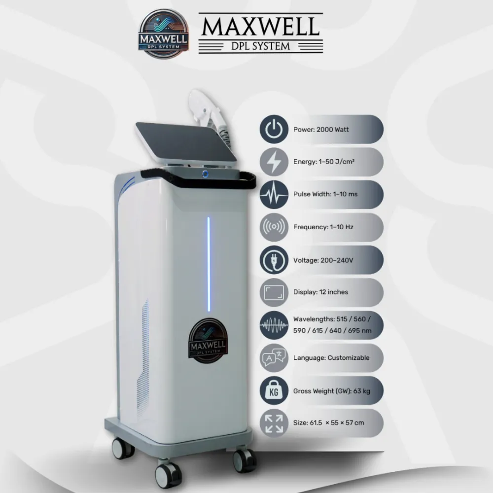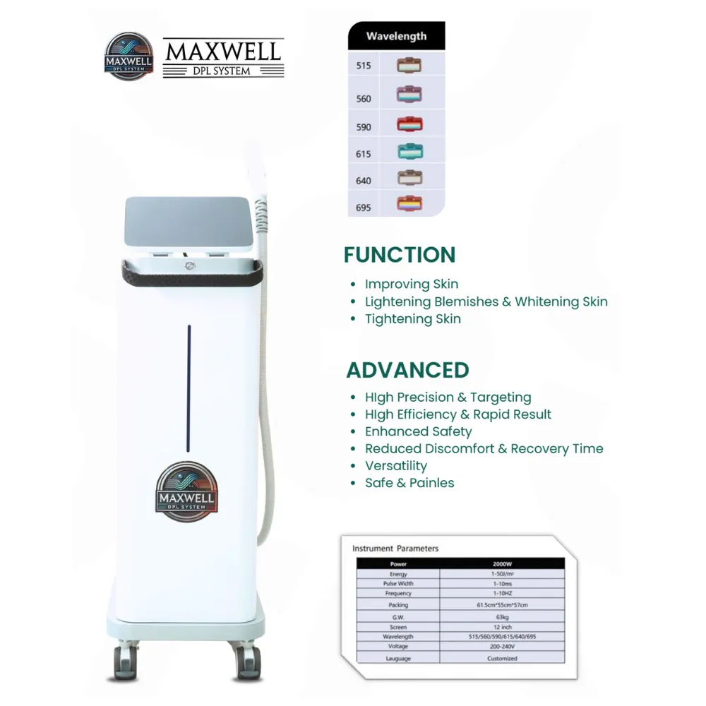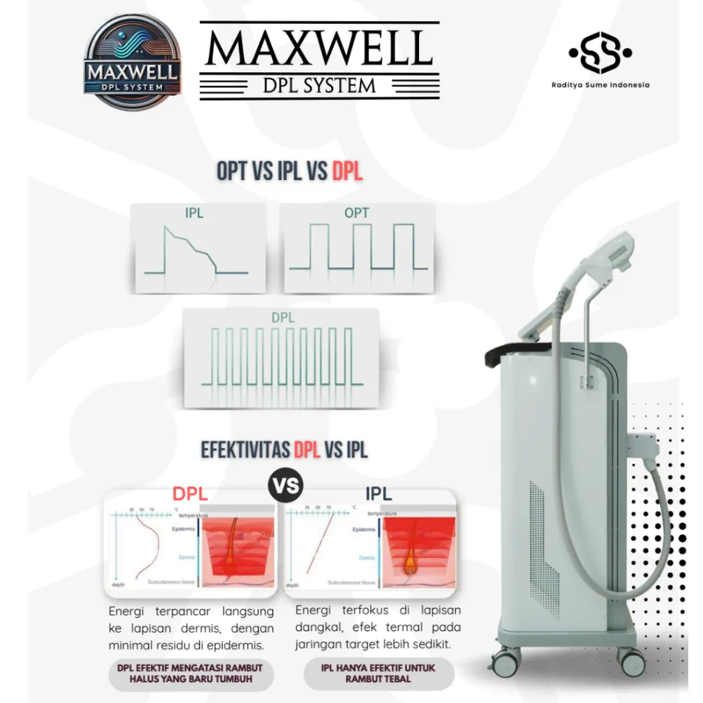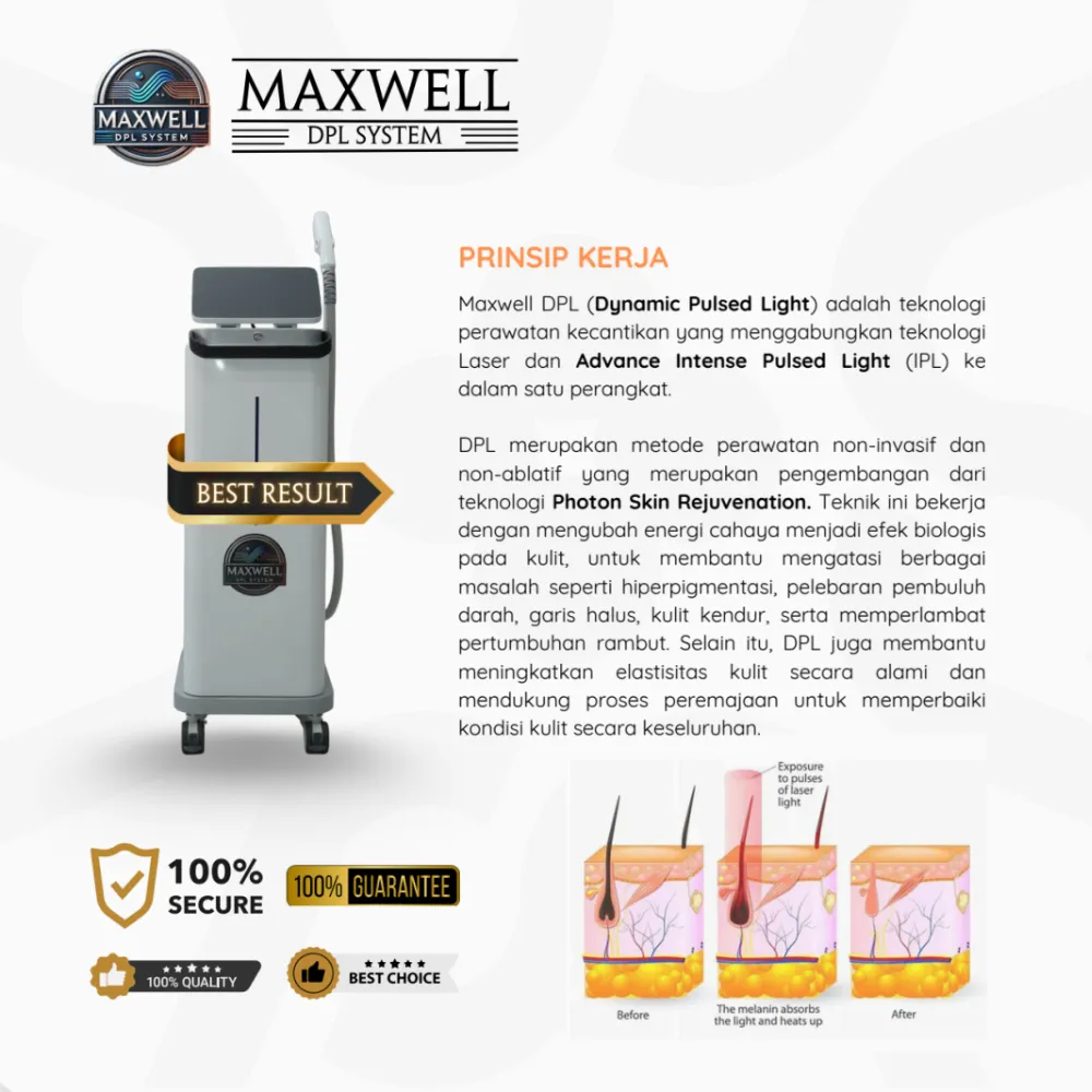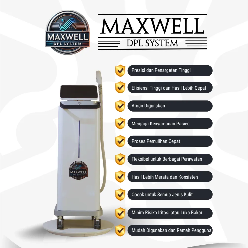 MAXWELL DPL – Cahaya Pulsa Dinamis Menghilangkan Bulu, Peremajaan Kulit, Jerawat, Pembuluh Darah Teknologi perawatan kulit generasi terbaru yang menggabungkan Laser + Advanced IPL dalam satu sistem.