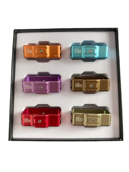 – 6 Filter panjang gelombang (515 / 560 / 590 / 615 / 640 / 695 nm) → 1 alat untuk banyak perawatan
