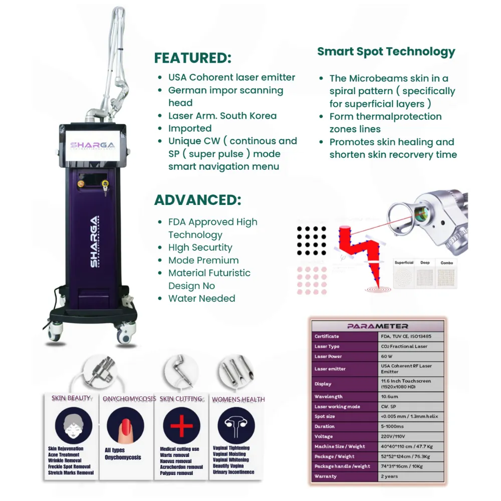 – Kegunaan: Resurfacing, rejuvenation, acne scar, pigmentation, tightening, vaginal care